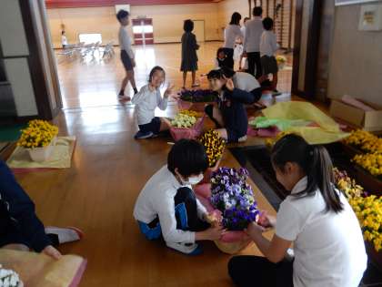 6年生が、新しく浮島小にやって来る1年生のために入学式準備をしました。1年生の教室、下駄箱、入学式の会場、校庭など。どの場所でも、きびきび動く6年生の姿がありました。新しい浮島小のリーダーたちは、とても輝いて見えました。