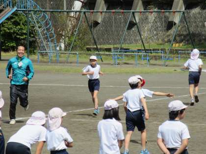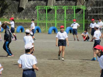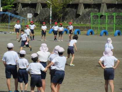 6年生はグラウンドで中線踏(ちゅうせんふみ)をやっていました。