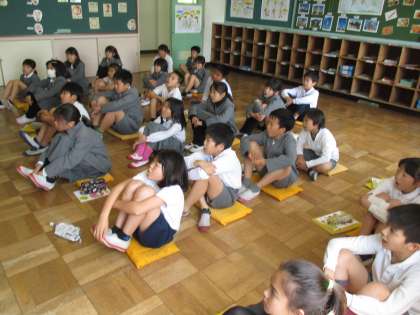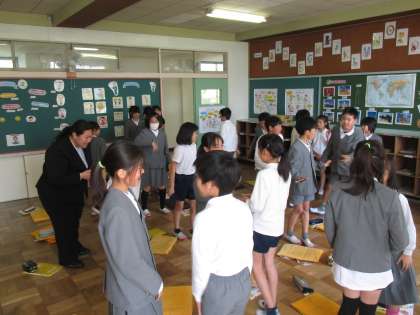 5年2組ALT トモエ ウスキの英語の授業です。トモエ先生の自己紹介と各自の自己紹介をしました。