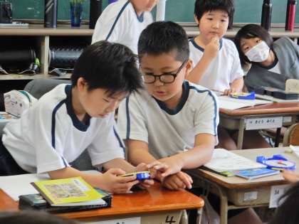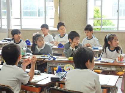 3年生が、算数の時間に友達の考え方を聞いいていました。「わかる。」ということは、友達が説明したことを、自分でもう一度みんなに説明できるようにすることだと先生に教わり、みんなの聞き方がとても真剣になっていきました。