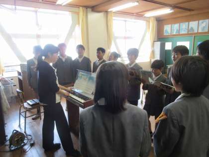 勝村先生の音楽 公開日 2018/05/01 更新日 2018/05/01 学校生活 2時間目、6年2組は浮島中から来ていただいている勝村先生の音楽です。「お互いの声を聞きながら歌おう」をテーマに2部合唱にチャレンジしました。 いいね(0)