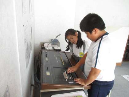 昼休みの放送室では、5年生が鍵を開けてくれて、いつもどのようにして朝や昼の放送をしているか教えてくれていました。