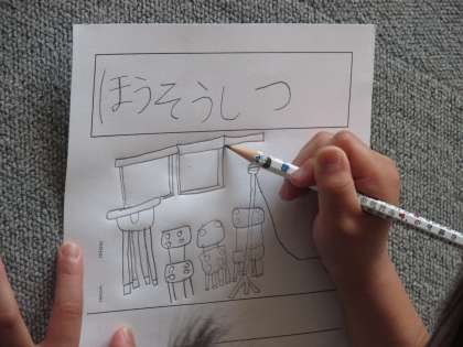 2年生が生活科の学習で1年生に学校の案内をするために、下調べをしています。