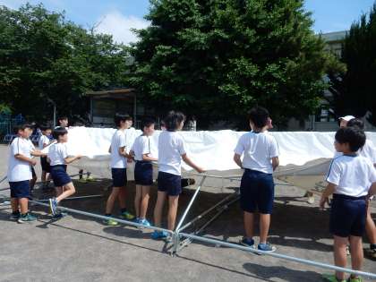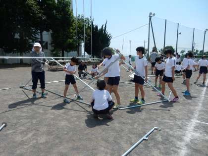 5,6年生が暑い中、テント張り、入場門立て、グランド整備など、力を合わせて準備をしました。明日は、お天気もよさそうです。