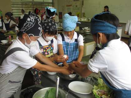 5ー2家庭科「調理実習サラダづくり」でした役割分担や協力体制がよくてきています。