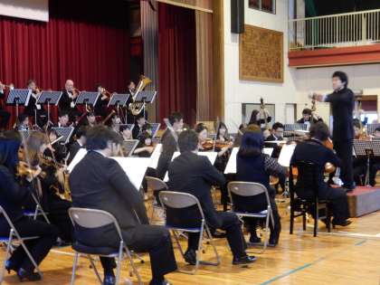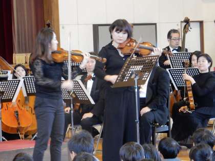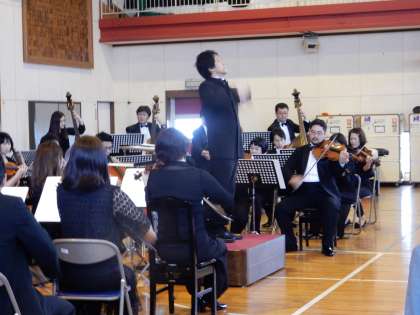 文化芸術による子どもの育成授業として、「日本センチュリー交響楽団」のみなさんが、オーケストラ公演を行ってくださいました。普段は、運動をしたり朝会で集まったりすることに使っている体育館が、コンサートホールに変わっての楽しい時間でした。