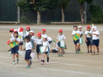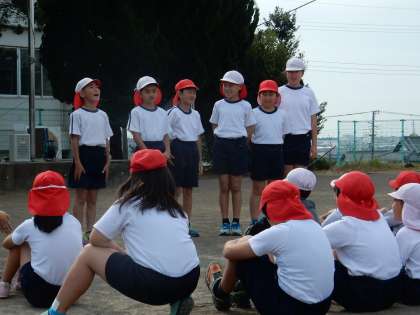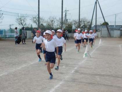 4年生は、走る前に自分の目当てを代表の人たちが伝えました。みんな5分間を力いっぱい走りきりました。走り終わった3年生は、みんなほっとした様子でした。