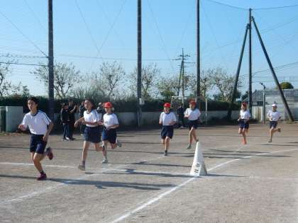 6年生にとっては、小学校最後の持久走でした。7分間を走り続ける6年生は、とても力強く感じました。自分の目当てのコーンを目指し、みんながんばっていました。