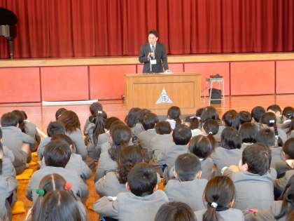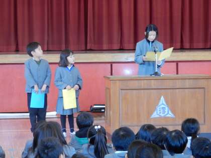 81日間の最後は、終業式です。2学期の振り返りを、2年、3年、5年の代表の人達がりっぱに発表しました。校長先生がお話の中で、「みんなの振り返りの中で、細かいところに目を向けると課題もあります。人を傷つける言葉を言ったり、態度をとったりしたことはないか振り返り、もし、言っちゃったな、悪かったなと思った人は、3学期違った姿を見せて下さい。そして、一番の願いは、1月7日に全員が元気にそろうことです。」と全校のみんなに伝えました。