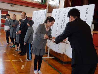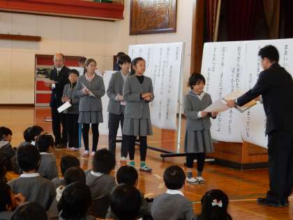2学期の終業式が終わった後、表彰式を行いました。クラスの友達の名前が呼ばれると、自分のことのように喜ぶ子どもたちの姿が、とてもすてきでした。
