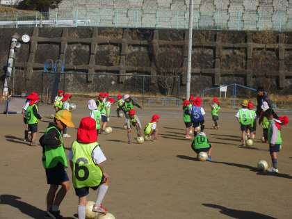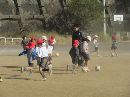 3時間目の1・2年生は、鬼ごっこから始まり、走ることをたくさん入れたメニューをしました。また、一人一つのボールをコントロールしていく体験をさせてもらいました。