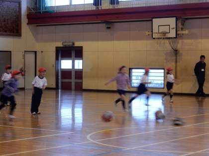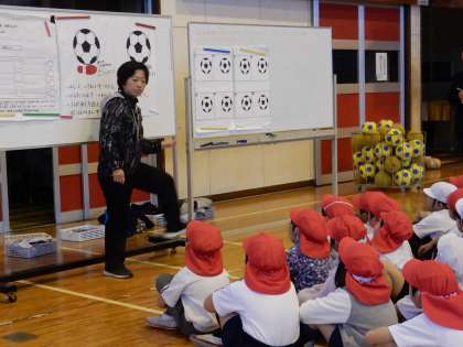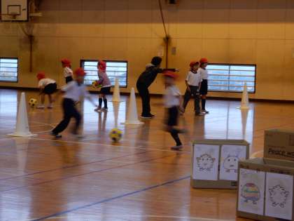 佐藤雅彰先生をお迎えして、浮島小の子どもたちの授業の様子を観ていただきました。1年1組は、体育館で「ボールけりゲーム」をしながら、強くボールを蹴る方法について考え、力いっぱいボールを蹴りながら確かめました。