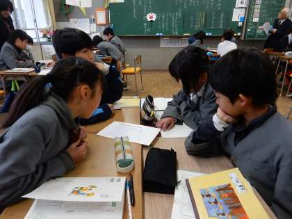 5年1組では、読解「沼津ブランド」アイディア募集!の学習で、分類方法についてグループで話し合っていました。5年2組では、国語「言葉をあやつろう」の学習で、詩の読み方についてグループで相談していました。