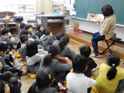 寒い朝でしたが、教室では、みんなが集中してお話を聞いていました。時にはお話の世界に入りこみ、聞いている人たちもいました。