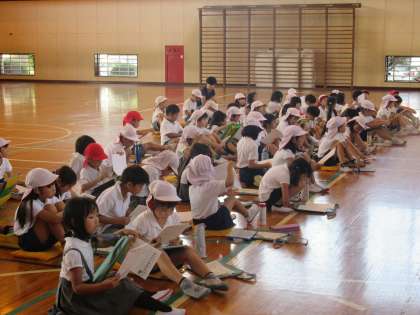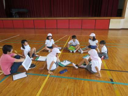 1・2年生は10月3日の校外学習、「楽寿園へ行こう」のたてわり班での打ち合わせです。