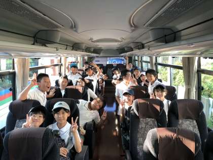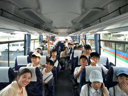 バスに乗りました。みんなで力をあわせて、いい修学旅行になるように頑張ります。