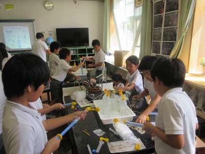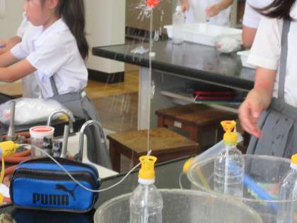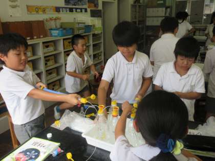 空気と水の力がどのように関係しているのか。閉じ込めた空気がどのように伝わっていくのか実験を通して考えました。