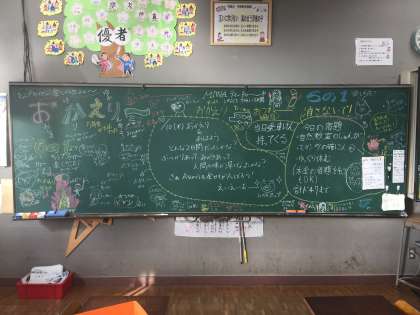 自然教室〜6年生からメッセージ〜 公開日 2019/10/10 更新日 2019/10/10 学校生活 自然教室の翌日、4・5年生の子どもたちは、少しつかれているように見えます。でも、教室に入ってみると、黒板いっぱいにお帰りなさいのメッセージが!嬉しいサプライズです。 いいね(0) 5年生 6年生