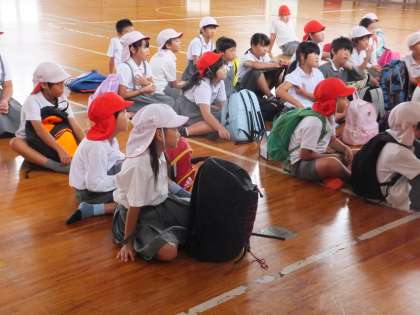 やる気まんまんで学校を出発しました。1日、たくさん学んで帰ってきてください。
