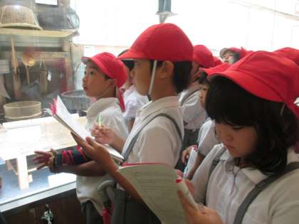 最後の見学先は、沼津御用邸記念公園と沼津市歴史民俗資料館でした。昔の道具を見たり、建物を見学したりしました。最後まで、どの子も、熱心に見学をしました。素晴らしい見学態度でした。