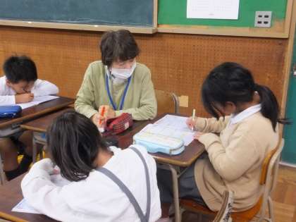 今日は、おもだか教室でした。3年生の希望者が、放課後学習支援ボランティアの先生方と一緒に、算数の勉強を行います。