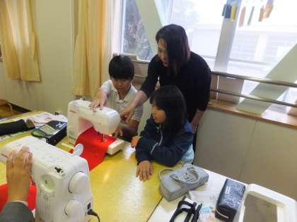 ミシンボランティアの保護者の方もお見えになり、やさしくていねいに使い方を教えてくださいました。