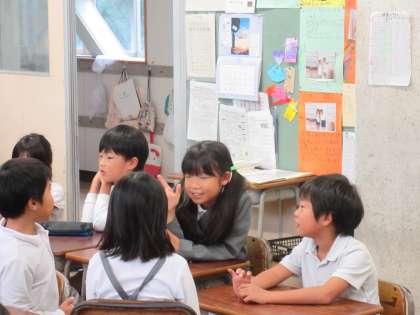 2年1組、2時間目はパーティーの計画について楽しそうに話し合っていました。