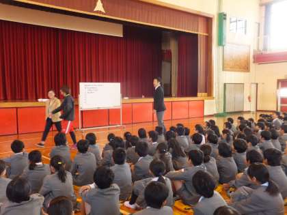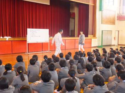 11月の朝会では、校長先生から、あいさつについてのお話がありました。