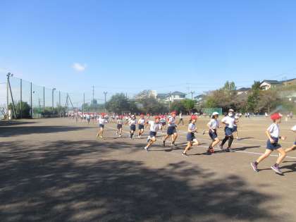今日から業間休みにかけ足運動が始まりました。記録会は11月27日(水)です。みんな秋晴れの中、気持ちよく走っていました。
