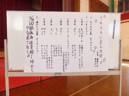 今日の昼休みは、「ウキウキじまん大会」が、開催されました。