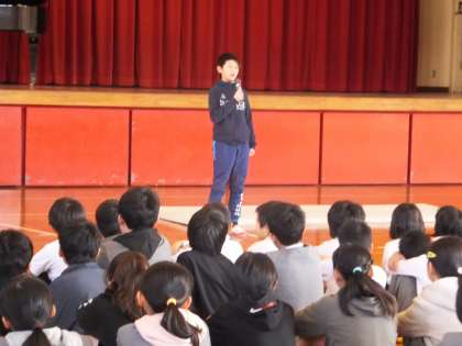 みんなの「じまんひろう」が終わって、感心する子、次は出たいと決心する子など、出演者も見ていた人も、みんな大満足の昼休みでした。