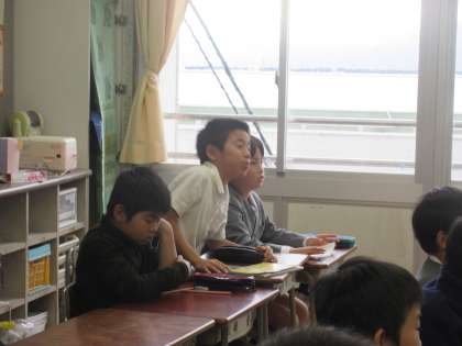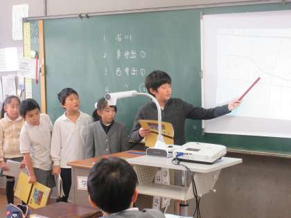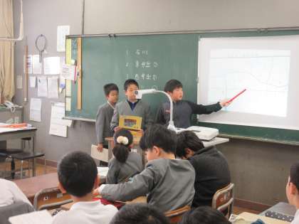 4年1組は取り組んできた安全マップの発表です。西井出の皆さんの発表場面でした。子どもたちが感じる登下校の危険について、具体的に述べられました。