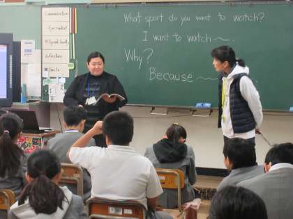6年1組英語では、オリンピックの話題から、What Sport do You want to watch? I want to watch 〜 . Why? Because〜 .について学びました。