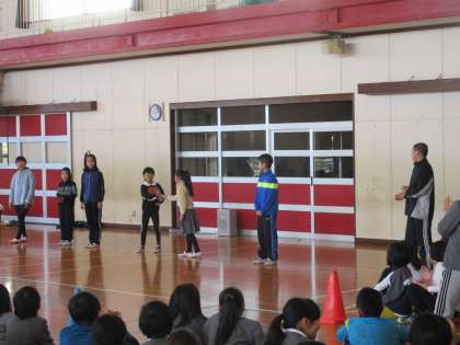 最後は名人、達人のみなさんが見せてくれました。すごいです。なわとび運動は2月一杯あるので、是非、新たな技にチャレンジしてなわとびカードを進めましょう。