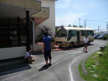 マイクロバス内が密にならないように、一度に中に入るのは、4人までです。