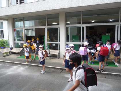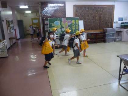5時間目で授業が終わった3年生以下の子供たちは、下校です。