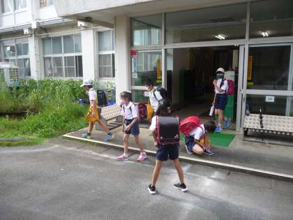 6時間目が終わった、4年生以上の子供たちも下校です。