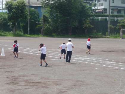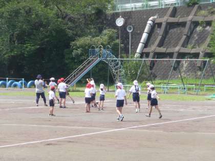 1組と2組が合同で、体育です。リレーの練習をしたら、次はサッカーです。