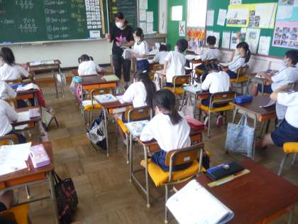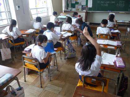 算数の授業です。3桁と3桁の足し算に挑戦中です。