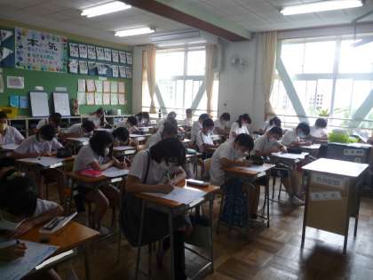 算数のテストです。6年生となり、学習内容もかなり高度になってきました。黙々と取り組んでいます。