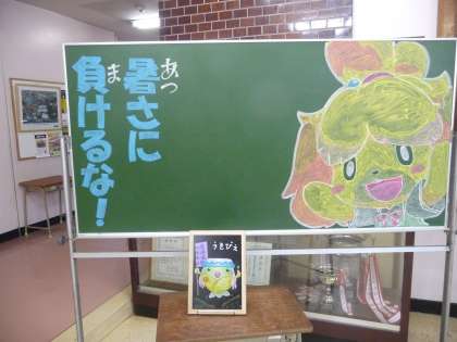 先週まで、「朝ごはん食べた?」と呼びかけていた児童玄関のチョークアートが変わりました。