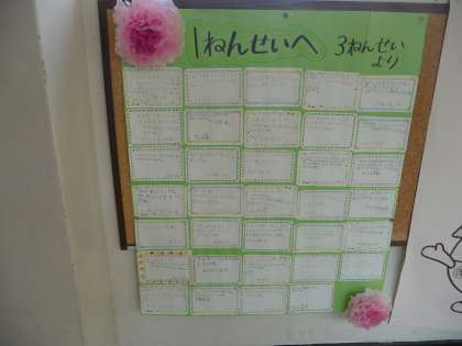 そのため、1年生を迎える会もやっていないのですが、代わりに、各学年がメッセージを贈りました。