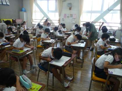 算数の授業です。今日は、まとめの問題に挑戦中です。