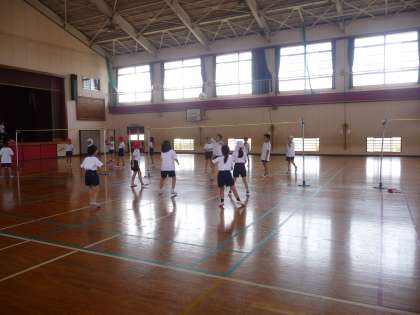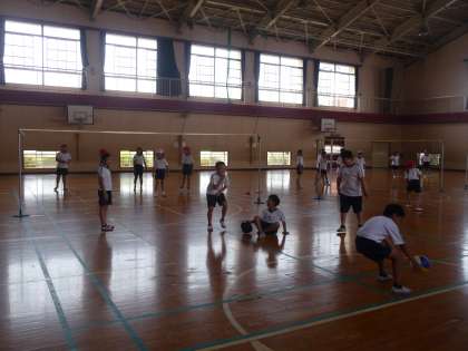体育の授業です。キャッチバレーボールに夢中です。