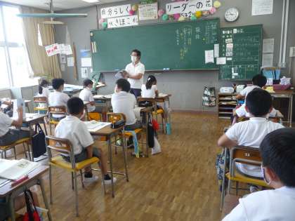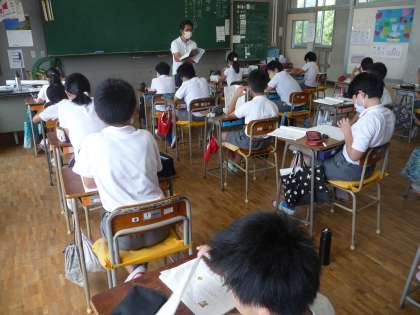 国語の授業です。「敬語」の学習をしています。まずは、教科書の説明を音読しています。