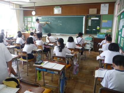 算数の授業です。先生の出した問いに、近くの友達とちょっと相談したりしている子もいます。