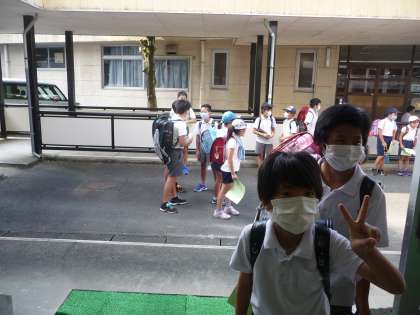 今朝も、暑いですが、子供たちは元気に登校して来ました。