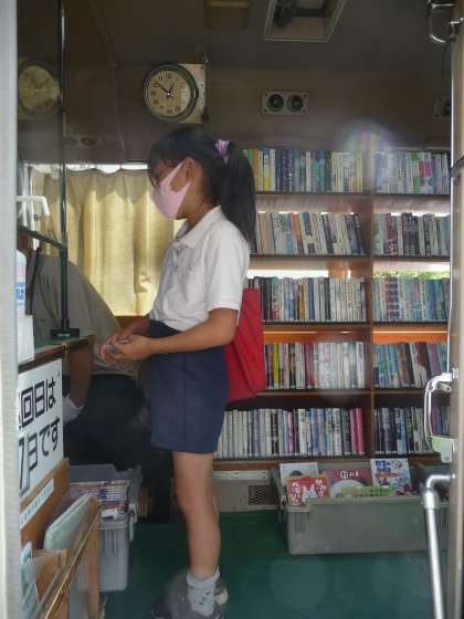 昼休みから沼津市立図書館の巡回文庫のバスが来校しています。