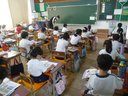 音楽の授業です。曲を聴きながら、曲の世界のイメージを作っています。