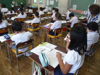 算数の授業です。「きょりと道のり」の学習です。学習内容も、段々難しくなってきました。